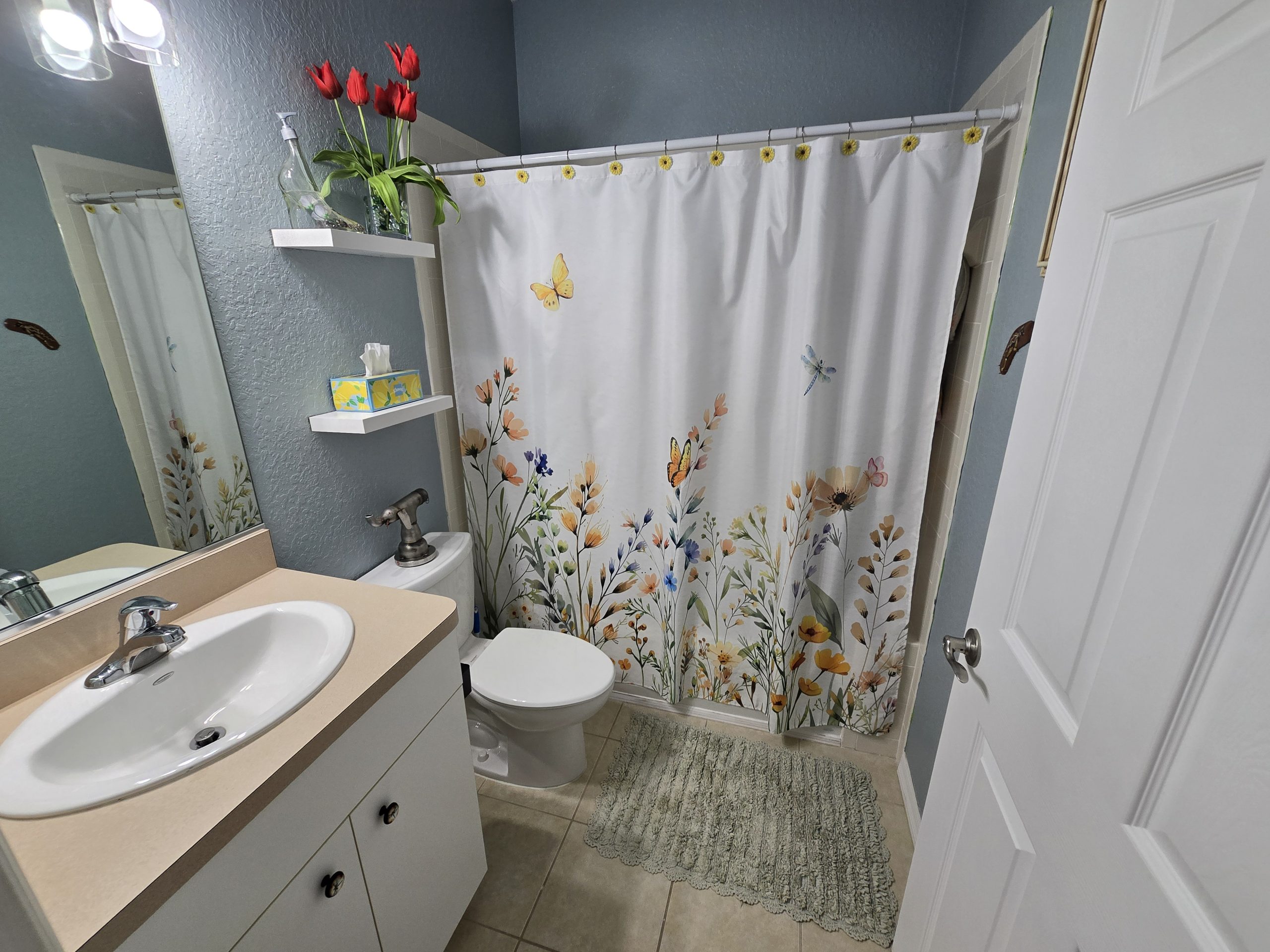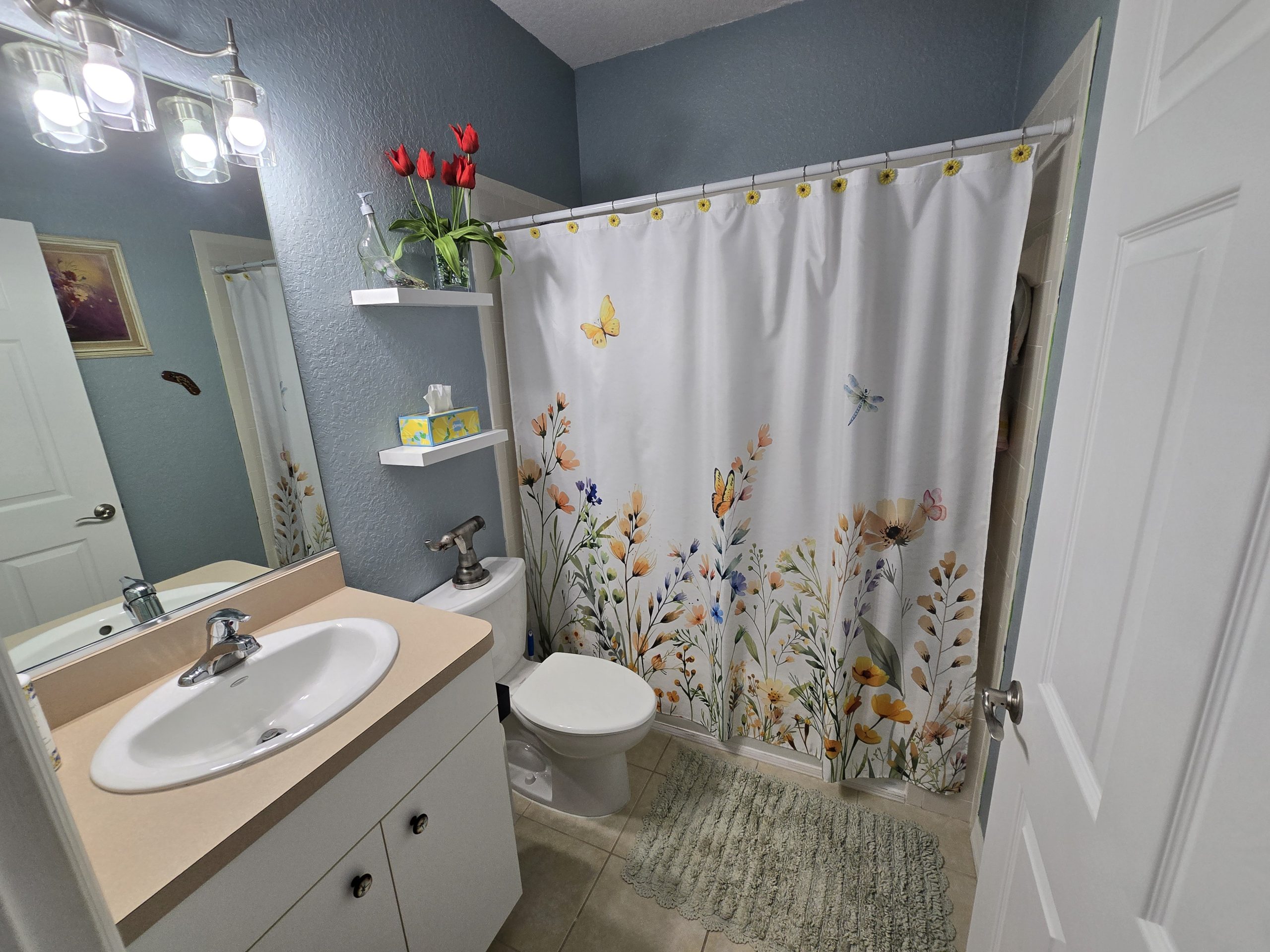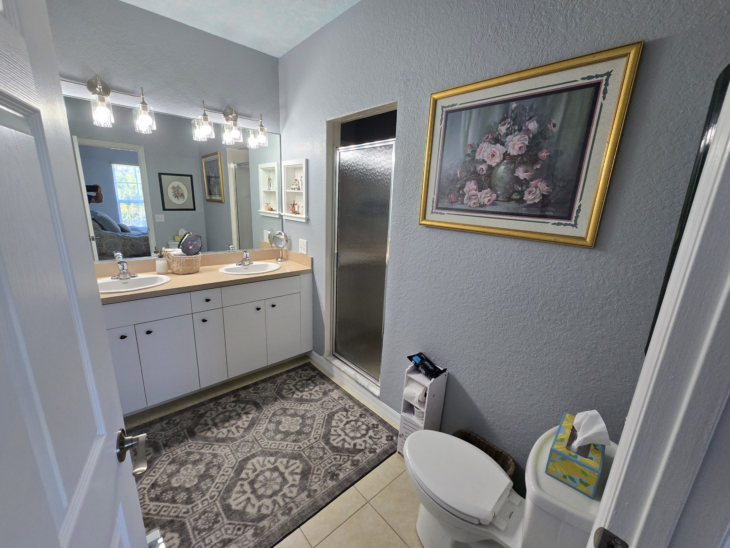The primary suite serves as a private retreat, featuring an upgraded bathroom with a stylish walk-in shower, modern fixtures, and matching new