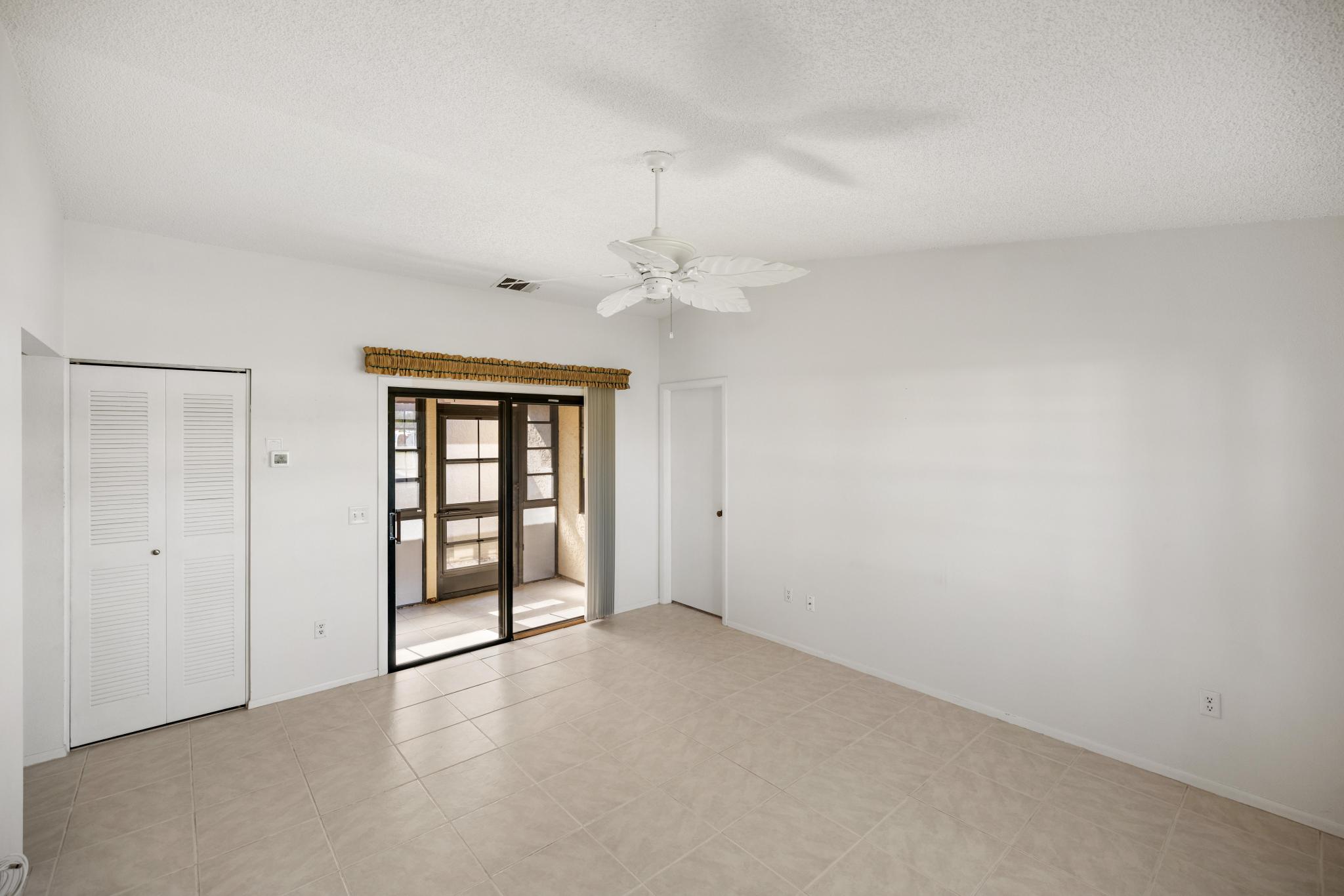 private bath, while the guest bedroom sits on the opposite side of the home for added privacy. Step outside to the pool area, or open wide all of