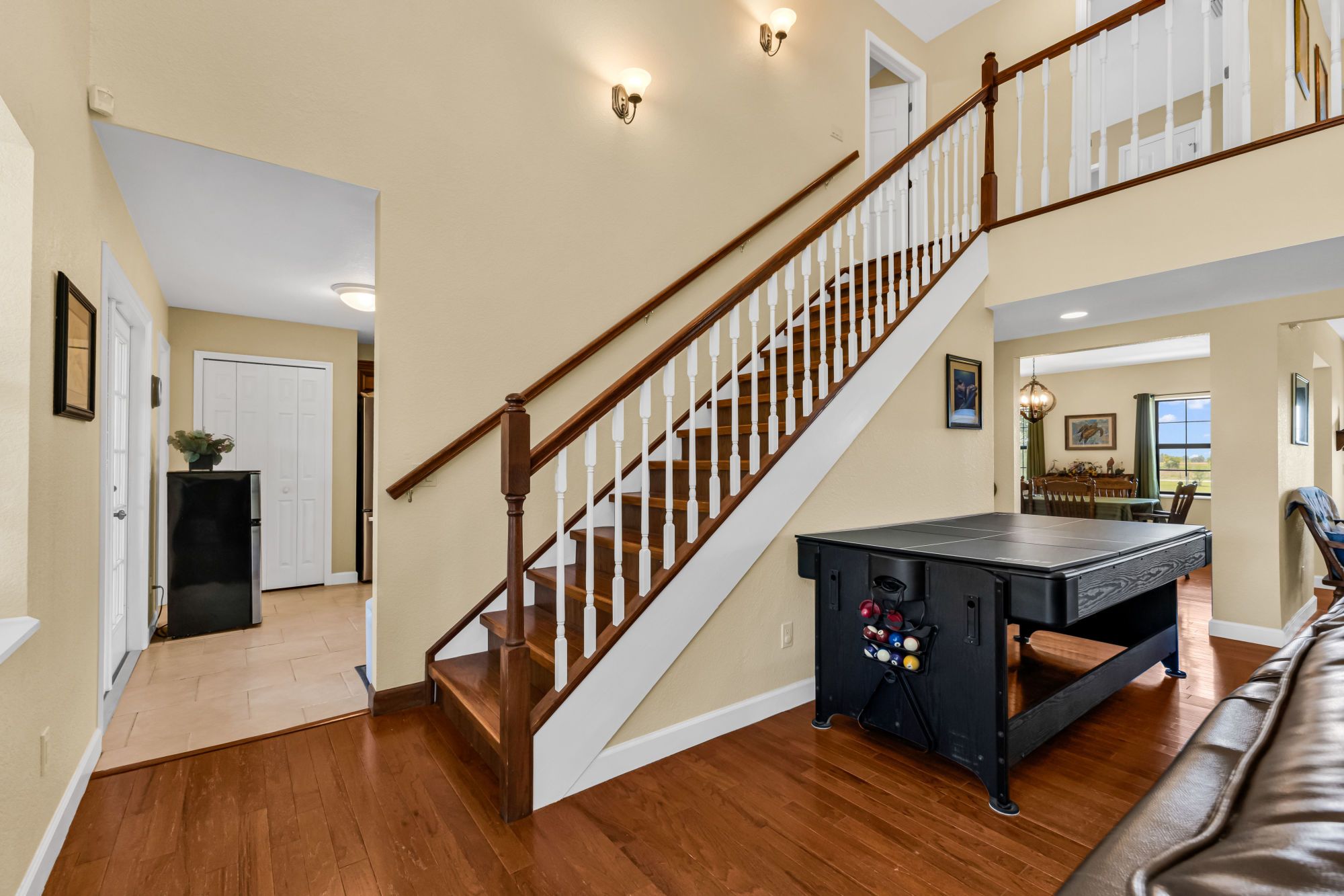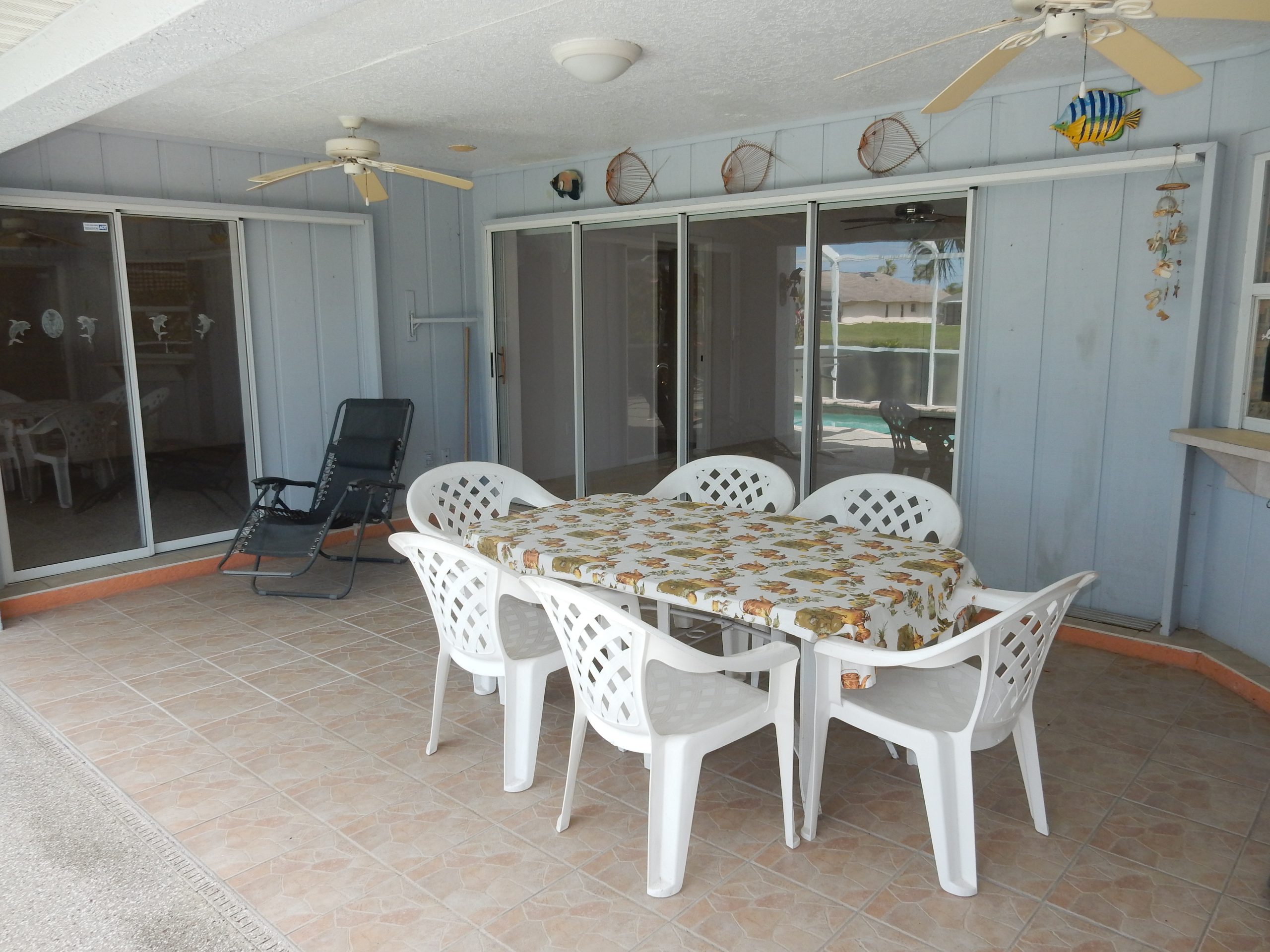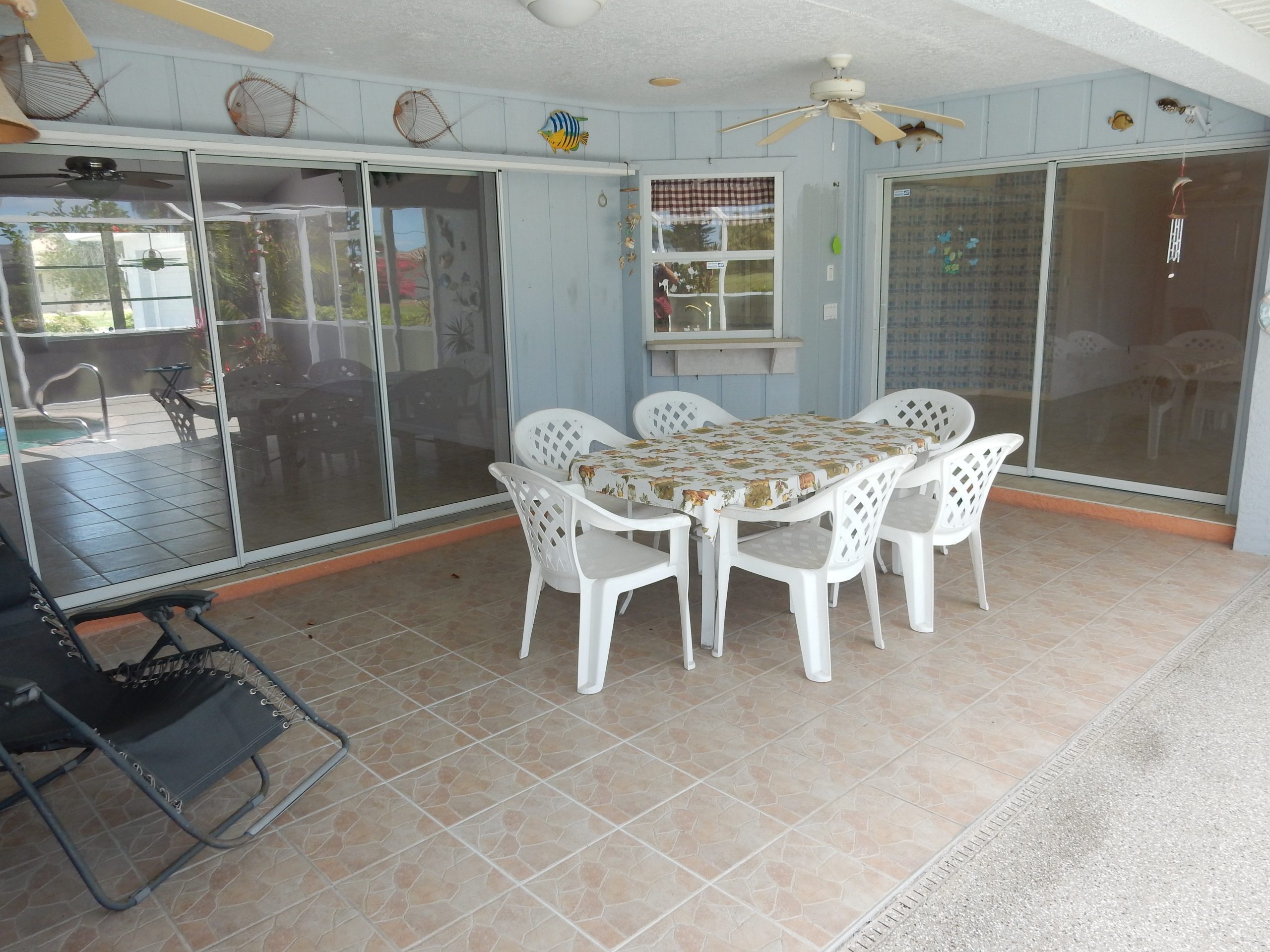 provides convenient direct pool access, ideal for guests and outdoor gatherings. Step outside through three large sliding glass doors to a