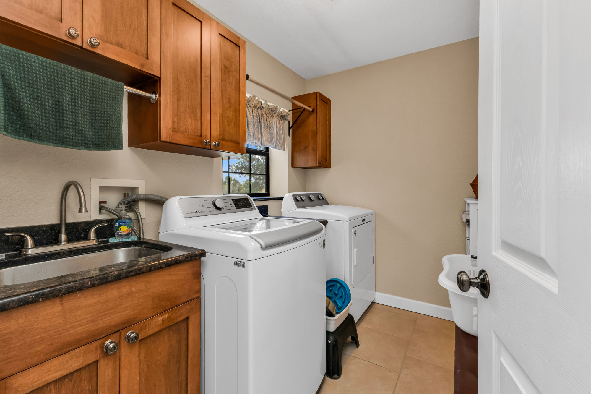 office with a closet can easily serve as a fourth bedroom. The home also includes a full laundry room with sink, cabinetry, and abundant storage