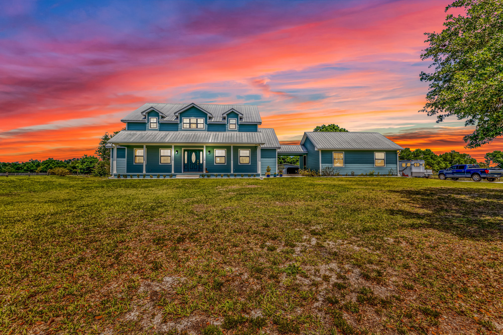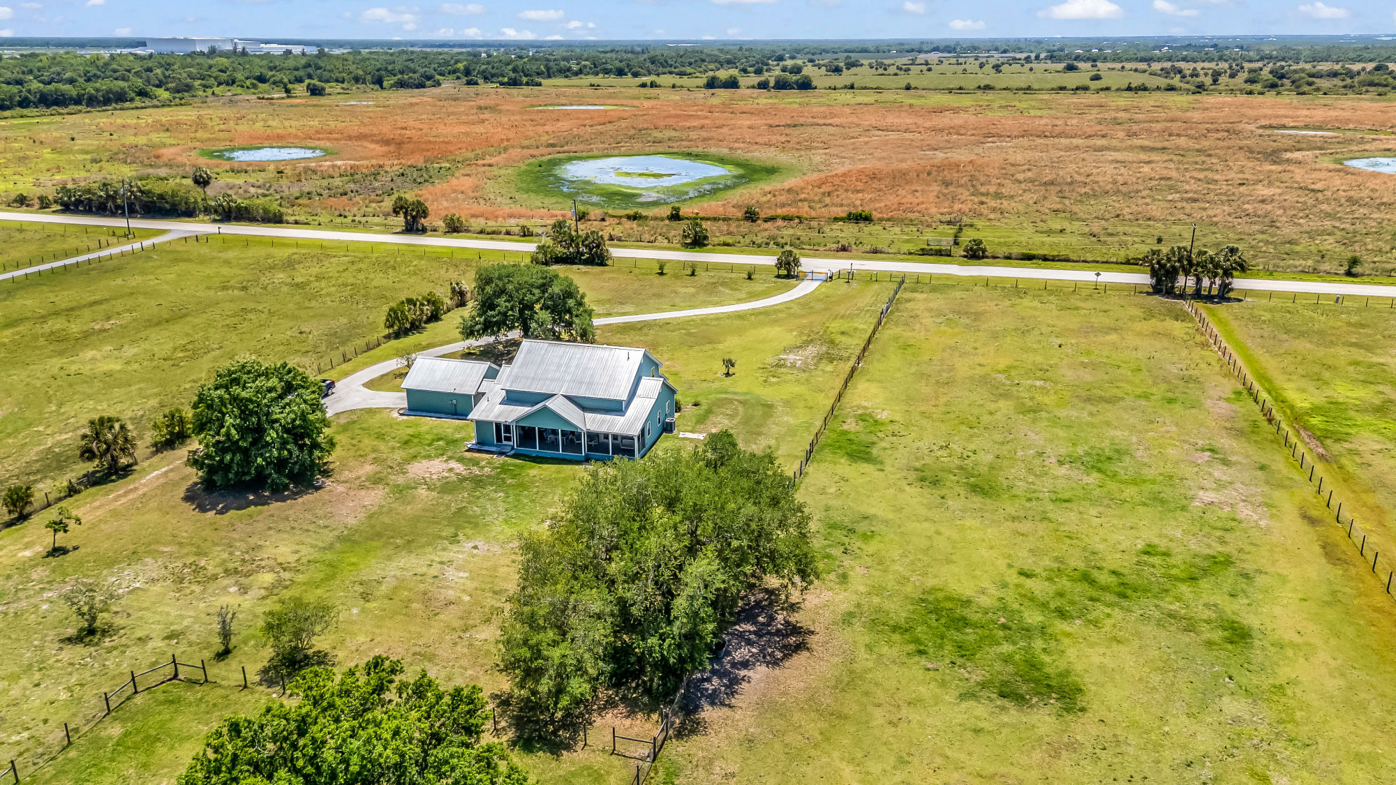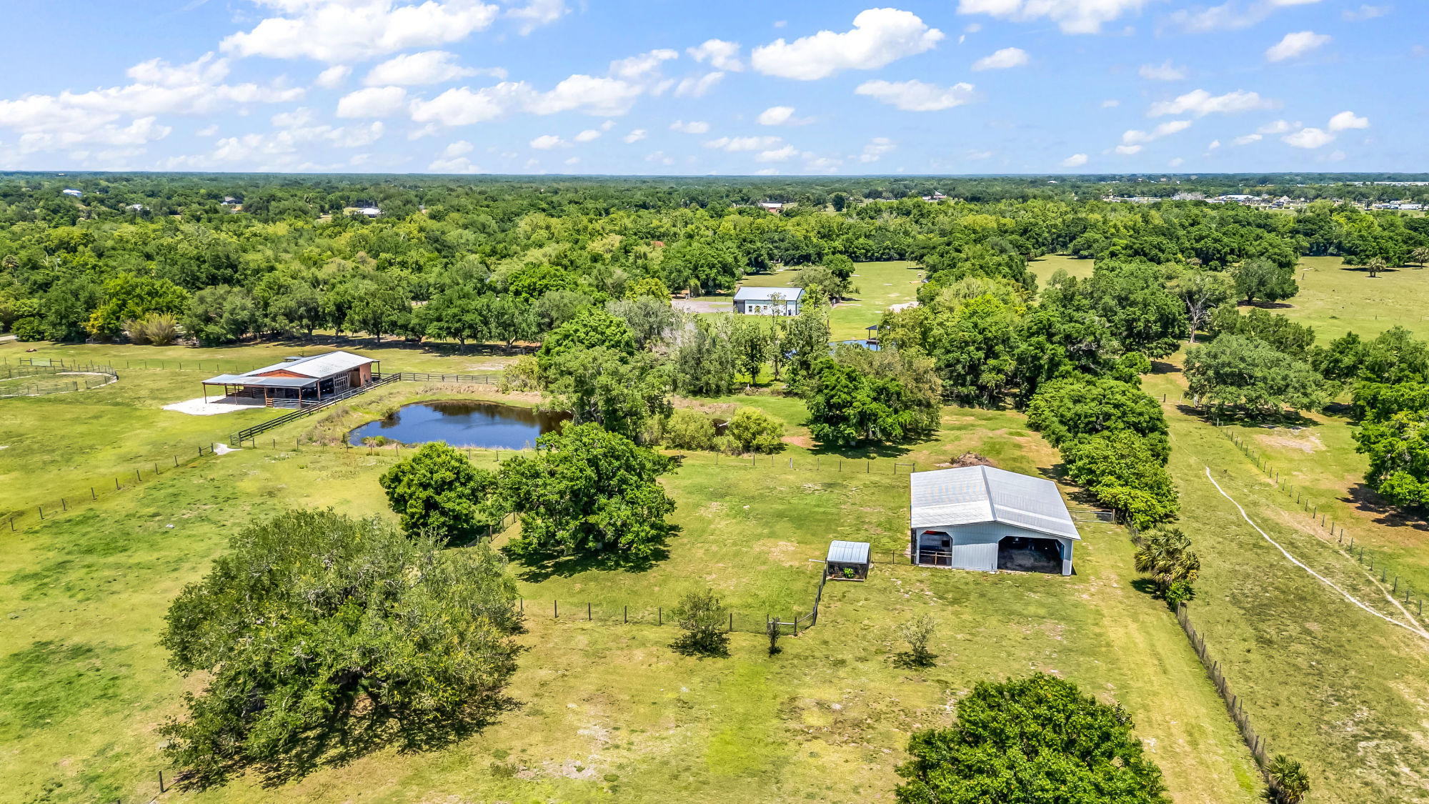 delivers durability, thoughtful design, and peace of mind on 5 fully fenced and cross-fenced acres with mature oak trees and a scenic rear pond.